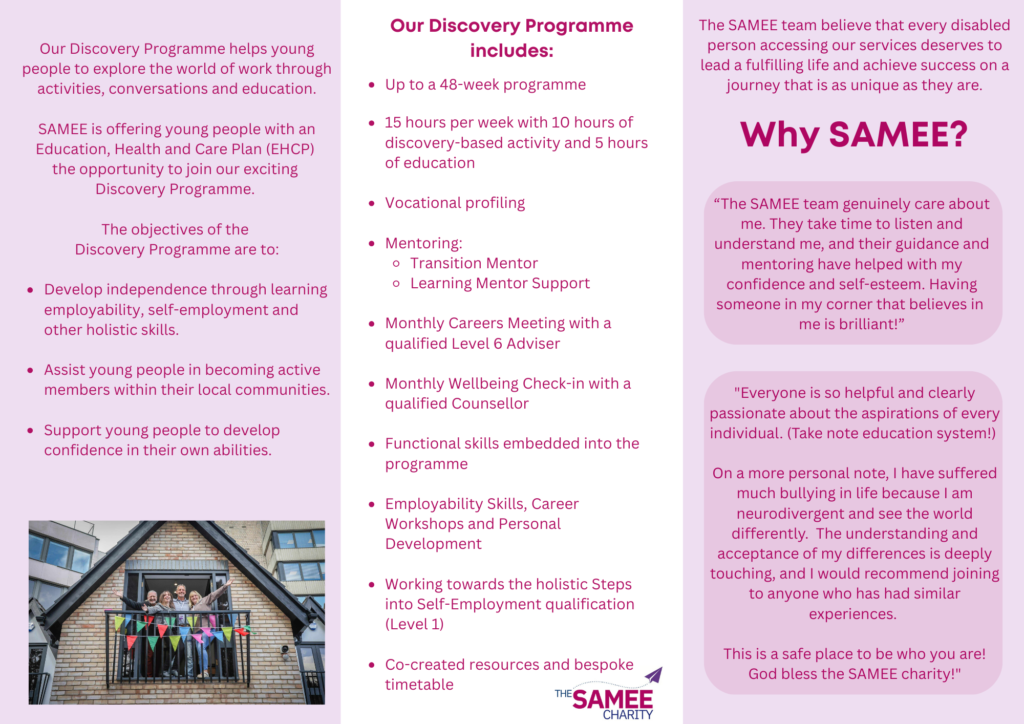 SAMEE is offering young people with an Education, Health and Care Plan (EHCP) the opportunity to join our exciting Discovery Programme.